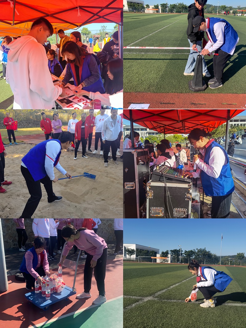 金秋送爽、阳光明媚,第一学生党支部全体党员在运动会开始前于操场准时集合,由支部书记刘飞同志介绍和分配任务。领取任务后,支部成员们分头忙碌起来,现场一片热火朝天的氛围,他们不怕累、不怕脏,有的清理地面,有的调试机器,有的帮助整理物资……在大家的团结协作下,运动会场很快就布置完毕,现场一片干净整洁,协助保障了运动会的顺利进行。