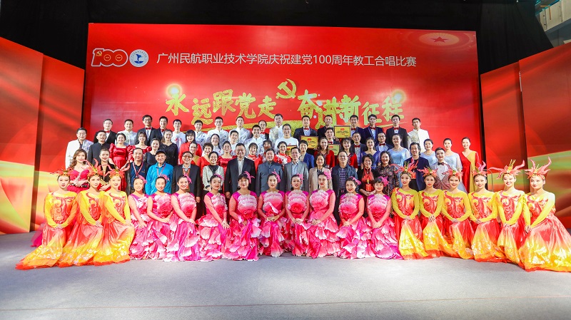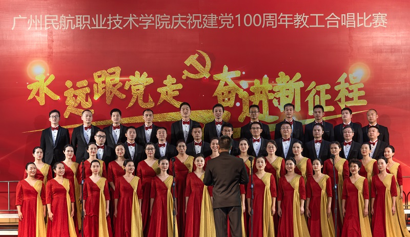 为庆祝中国共产党成立100周年,激发学校教职工爱党爱国爱社会主义的炽热情怀,12月1日下午,学校在机场路校区体育馆举行了“永远跟党走·奋进新征程”庆祝建党100周年教工合唱比赛。全体校领导出席并为获奖代表队颁奖,各参赛队伍、教工和学生代表近500人观看了比赛。华南理工大学艺术学院声乐罗志旋副教授、广州歌舞剧院女高音歌唱家辜玲英教授、广州市越秀区音协田兆丰副主席、广东省外语艺术职业学院吴潭伟副教授、广州市声乐学会黄江龙副会长担任本次比赛评委。