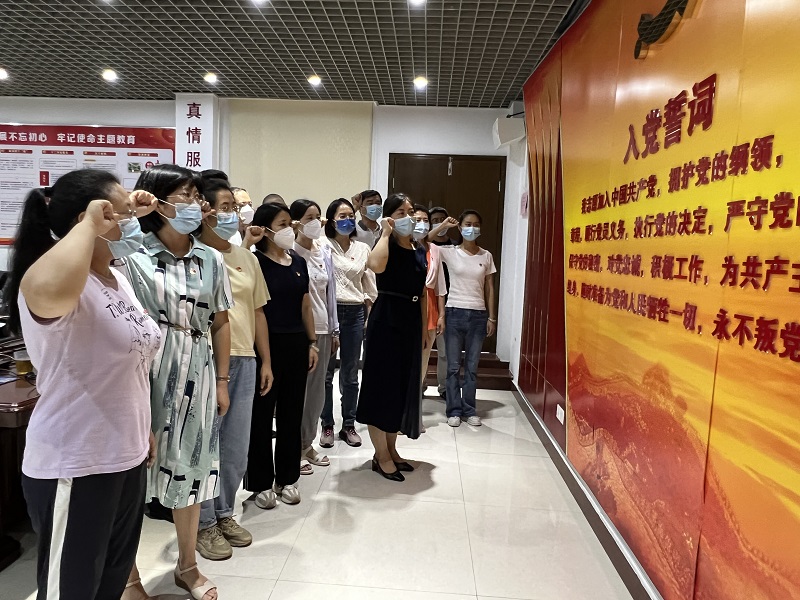 活动中,首先由党支部书记陈文玲同志为全体党员送上了精致的政治生日贺卡,勉励全体党员不忘入党初心,牢记职责使命,在本职工作中进一步发挥好党员先锋模范作用,推动党建工作和业务工作深度融合。然后,由党支部书记领誓,全体党员重温了入党誓词。铿锵有力的宣誓声在会议室内回荡,在场的每一位同志都接受了一次深刻的党性教育和精神洗礼。接着,党支部书记陈文玲同志以香港回归25年的25个瞬间和习近平总书记出席庆祝香港回归祖国25周年大会暨香港特别行政区第六届政府就职典礼讲话的两个视频导入党课,带领全体党员学习习近平总书记重要指示精神、中央财经委员会第十一次会议精神、中央政治局会议和中央政治局常委会会议精神以及习近平总书记在中央政治局第四十次集体学习时的主要讲话精神。陈文玲同志理论联系实际、历史现实结合,为支部全体党员上了一堂精彩的党课。她要求全体党员认真领会党课内容,不断增强党的意识和党员意识,牢记党的初心和使命,不断加强党性修养,锤炼党员意志,弘扬伟大建党精神,凝聚团结奋进力量,以党史学习教育“我为群众办实事”这个载体,全力以赴做好后勤保障服务工作。