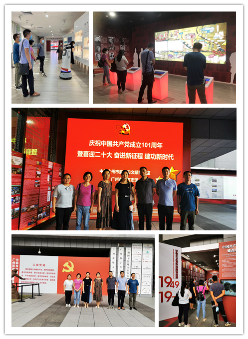 9月21日下午,7名党员在AI智能讲解员的带领下,参观了中国共产党广州百年历史展览、广州全面建成小康社会专题展、“英雄广州 百年峥嵘”、英雄广州故事屋、广州帮扶成果专题展、“同舟共济 志同道合”港穗双城图片展等专题展览;党员同志们还参与了现场党史答题竞赛。