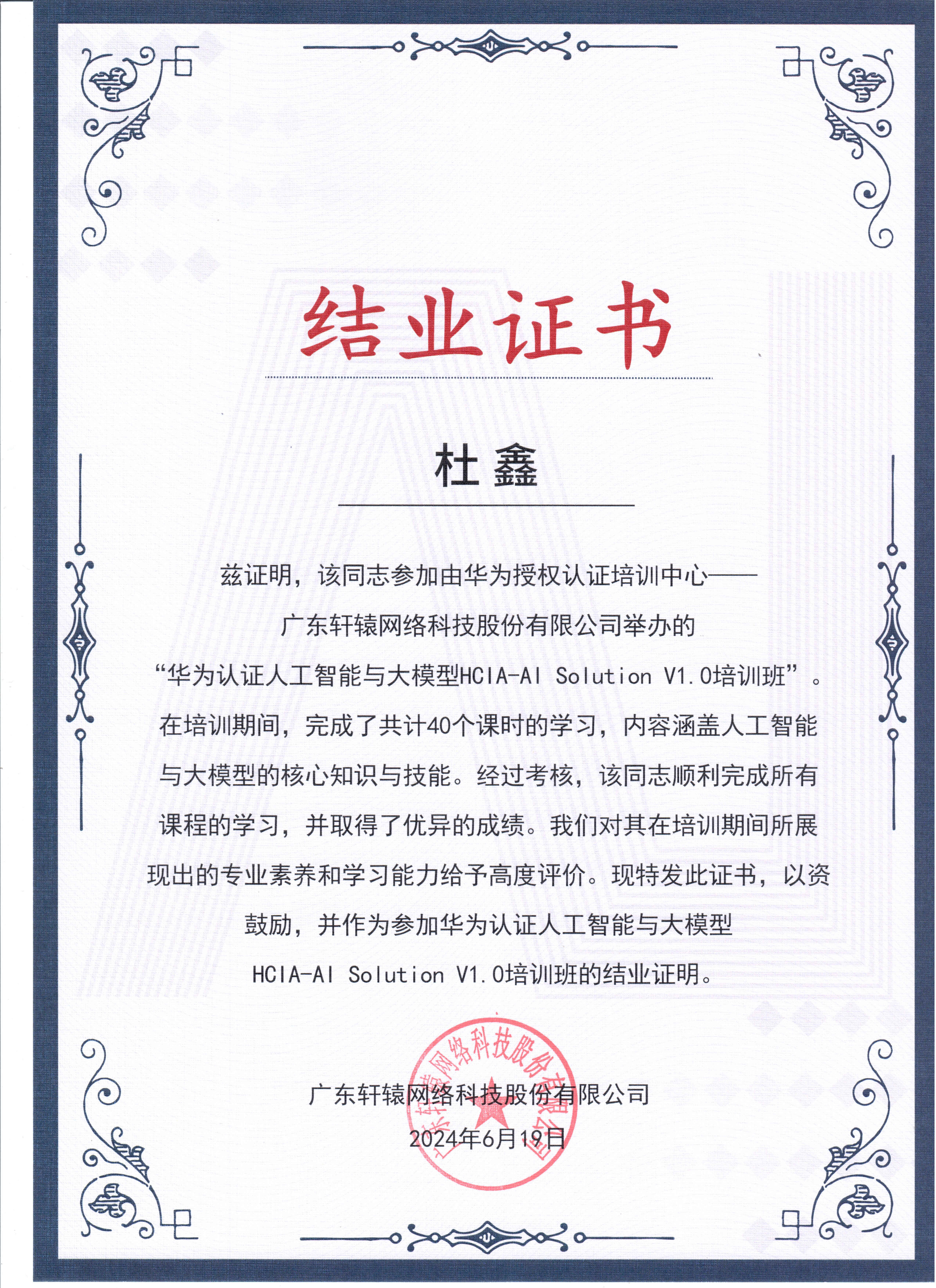 华为认证人工智能与大模型HCIA-AI Solution V1.0培训班结业证书.jpg